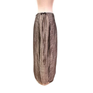 Free People Vintage Silver Metallic Crinkle Maxi Wrap Skirt Size 6
