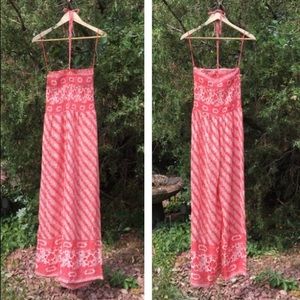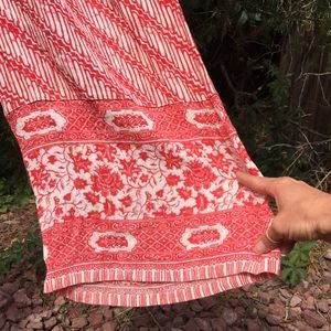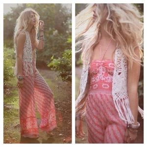 Gorgeous bohemian print Free People Vintage Tube Jumpsuit in red-natural combo. Total 70's Gypsy feel! Relaxed pants lined with silky feeling shorts underneath and smocked top with a long tie that can be worn around the neck as a halter or tied at the chest in a tube top style. Perfect condition, only worn once, no flaws. So lovely and comfortable! ❤️