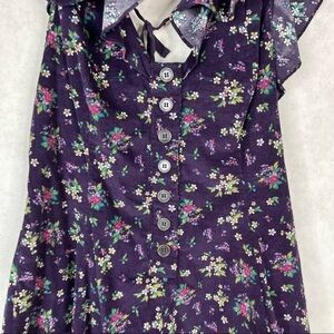 Free People Violet Visions Corduroy Purple Floral Ruffle Romper Women's Size S