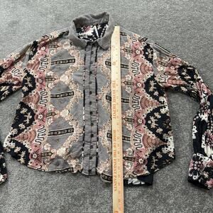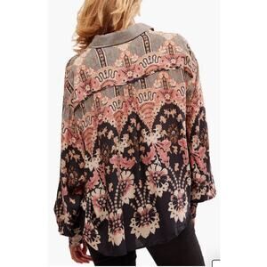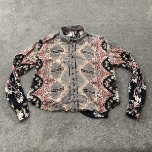 Free People Virgo Bay Button Down Shirt M Mixed Floral Stripe Boho Long Sleeve