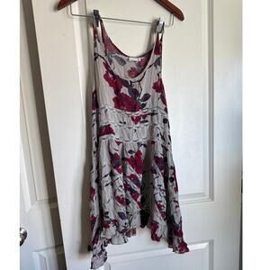 Free People Voile & Lace Slip Dress XS Gray Red Floral Trapeze Boho