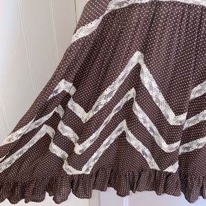 White and brown polka dot Voile and Lace Trapeze Slip Dress from Free People. Lace trim and asymmetric hem. Perfect condition. Only worn once.