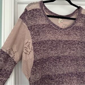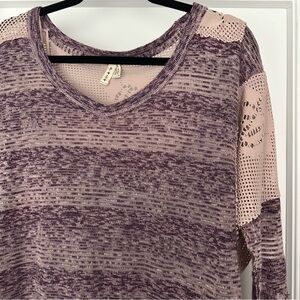 Free People WE THE FREE Purple Striped Pointelle Boho Lagenlook Oversized Top