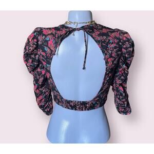 Free People WOMENS Monica Floral Corset Top Cropped Backless NWOT Black Red XS
