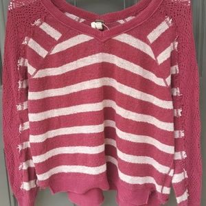 Free People We The Free Maroon Striped V Neck Sweater Small Distressed. Condition is "Pre-owned".