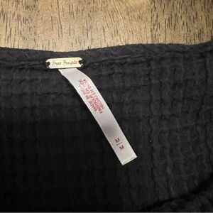 Free People Waffle Knit Baby Doll Buttoned Dress M Black Boho Flawed