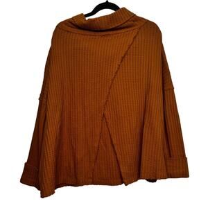 Free People Waffle Knit Cowl Neck Tunic Top Small Rust Orange Boho Layered Hem