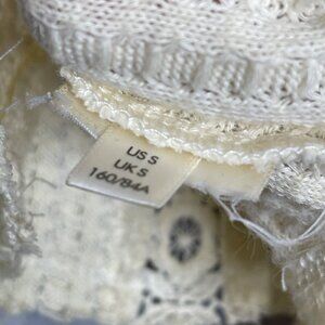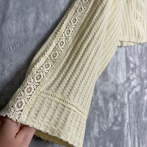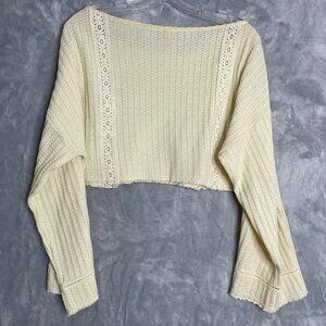 Free People Waffle Knit Crop Top Womens S Cream Lace Oversized Boho