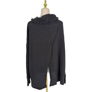 Free People Waffle Knit Long Sleeve Top MEDIUM Open Back Oversized Juicy Black
