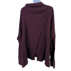 Free People Waffle Knit Rough Hem Open Back Sweater L Wine/Burgundy Cowl/Scoop