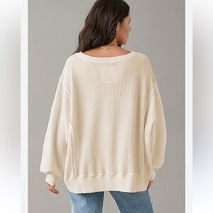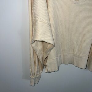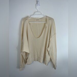 Stay cozy and stylish with this cream V-neck sweater. Perfect for layering and adding a touch of elegance to your wardrobe.
