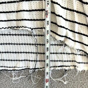 Free People Waffle Knit Thermal Top Cream Ivory Blue Raw Hems Oversized