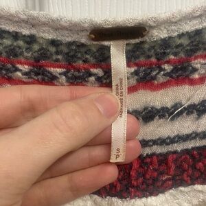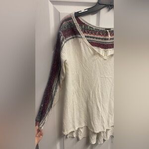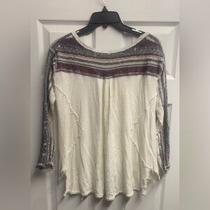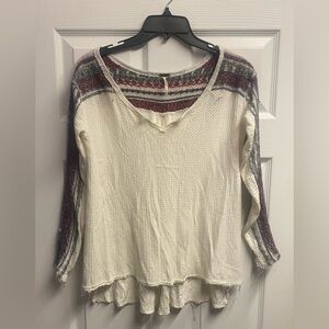 Free People Waffle Knit Thermal V-Neck Top W/ Wool Blend Embroidery Size Small