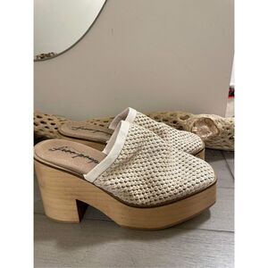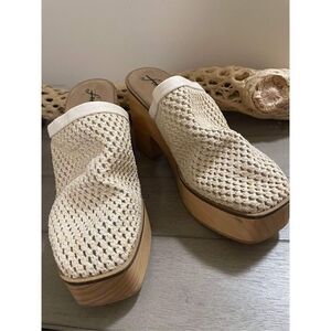 So made for stepping out, these warm-weather ready clogs are featured in a platform-style and woven design with a chic raffia upper, bold pine wood sole, and chunky block heel.