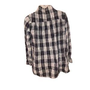 Free People Walk in the Park Plaid Burlap Cowl Pullover Tunic- XS