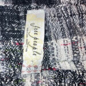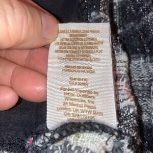 Autumn ready free people tunic with pockets and raw edge decorative cowl front. Peasant blouse pullover style can be worn over a long sleeve or turtleneck, and could even fit under a cute vest or jacket! Tweed inspired fabric is mainly black and white/grey but has fun pops of red and green thread in the weave. Raw edges on hems, one button on cuff, longer in the back with pleats in front and back. Two side seam pockets. Great fabric and super comfortable.
