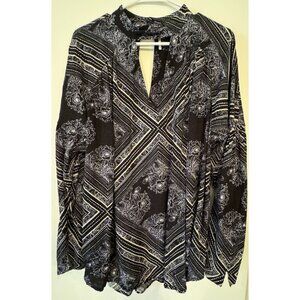 Free People Walking On A Dream Tunic Shirt Black Size Large Boho Long Sleeve