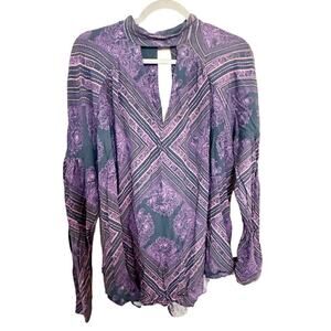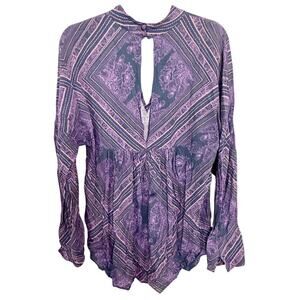 Free People Walking On a Dream Tunic Long Sleeve Paisley Top Purple Size Medium