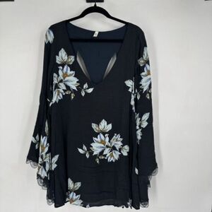 Free People Wanderer Mini Dress Charcoal Floral Bell Sleeve As Seen On TV Small