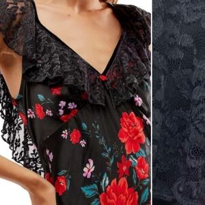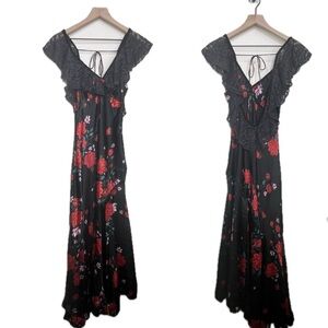 Free People Warm Hearts Lace & Satin Midi Dress, Black Multi size XS NWT