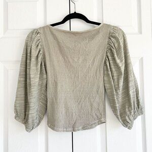 Free People Washed Pine Green Puff Sleeve Top Women's Size X-Small