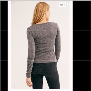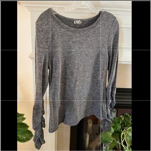 Perfect for layering, this long-sleeve ribbed top features a washed fabrication with ruched details down the sleeves. Brand New, never worn, excellent condition.