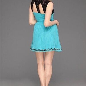 Elevate your wardrobe with this chic blue and black sleeveless dress. Free People Water Lily Dress, EUC, Size Small. Perfect for any occasion, it combines comfort with style.