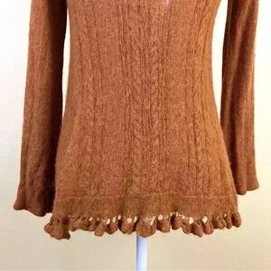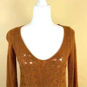 Free People Waterfall Boho Sweater Honey Alpaca Blend V-Neck Sweater Size S