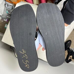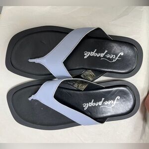 Chic and comfortable, these Free People sandals feature a minimalist design with a sleek black sole and lavender thong straps. Cushioned footbed keeps you comfortable all day long. Trending square toe. Perfect for casual outings and beach days. No sole wear. Some slight depressions to footbed. Nothing that impacts form or function when worn. Please see all pix.