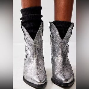 Free People Way Out West Cowboy Silver Boots Size US 7.5 / EU 37.5