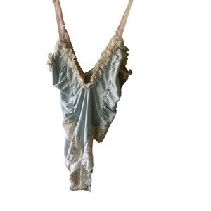 Free People We Are HAH Back Off Deep V Lace Bodysuit Light Pale Blue SZ S