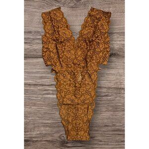 Free People We Are HAH Cut To The Chase Bodysuit Sz Small Womens Brown Lace Ling