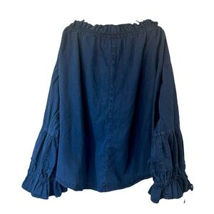 Free People We The Free Alpine Denim Boho Top With Ties Size Small Oversized