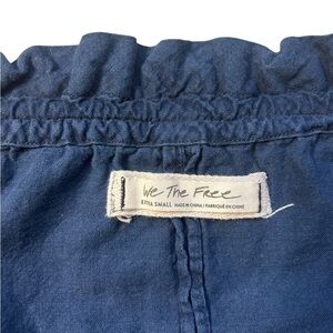 Preowned, Good Condition, Free People We The Free Alpine Denim Boho Top With Ties Size Small Oversized There are some factory raw edges on trim Length 24” Pit to Pit is 24”