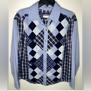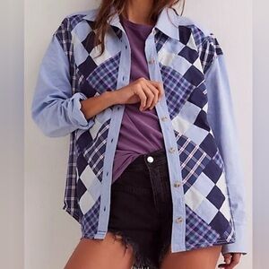Free People We The Free Argyle Plaid Shirt in Blue Western Festival Cowgirl NWOT SIZE LARGE