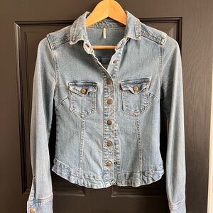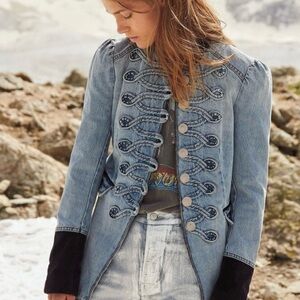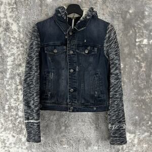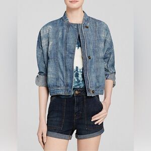 Free People We The Free Ariel Cozy Bomber Jacket Denim Sherpa Trim Size L