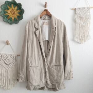 We The Free Beckett Boyfriend Linen Blend Beige Blazer Size Small