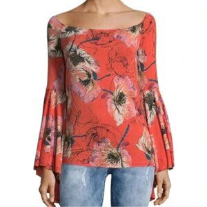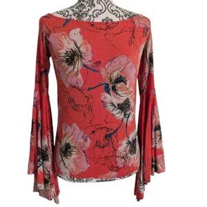 Free People We The Free Birds Of Paradise Printed Top Orange Women's size Medium