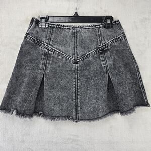Free People We The Free Black Denim Faded Pleated Skirt Distressed Y2K Grunge