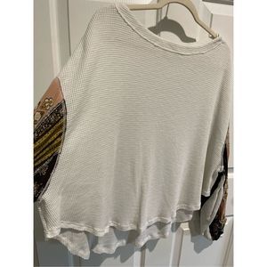 Free People We The Free Blossom Floral Balloon Sleeve Thermal Oversized Top M