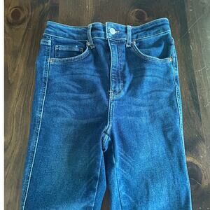 Free People We The Free Blue Denim Fringe Edge Button Cotton Pants Women's Sz 28