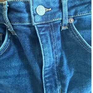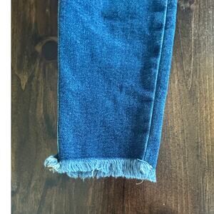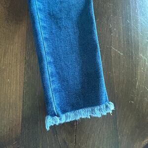 Free People We The Free Blue Denim Fringe Edge Button Cotton Pants Women's Size 28. In good used condition. Approximately 36 inches long, inseam is approximately 25 inches and waist is approximately 12 inches wide laying flat.