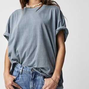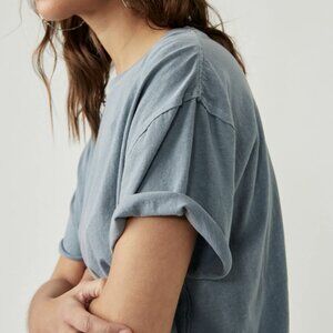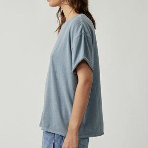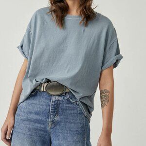 Free People - We The Free - Blue Mirage Crew Neck Raw Edge Seams Boxy Nina Tee