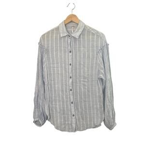 Free People We The Free Blue Striped Ruffle Button-Down Shirt Size Small