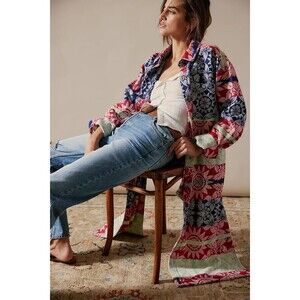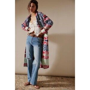 Free People We The Free Brick Lane Jacquard Maxi Shirt Jacket Top M 281237