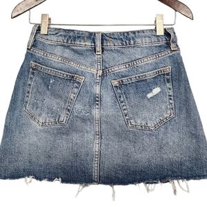 Free People We The Free Button Fly A-Line Denim Jean Skirt Raw Hem Distressed 26