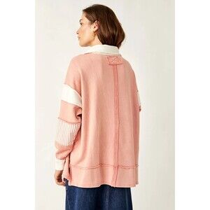 Free People We The Free Clean Prep Polo Pullover Top Oversized Striped XS 281002
