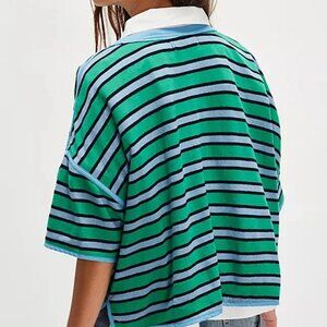 Free People We The Free Clean Rugby Tee Striped Printed Cropped Top Medium M NWT