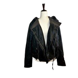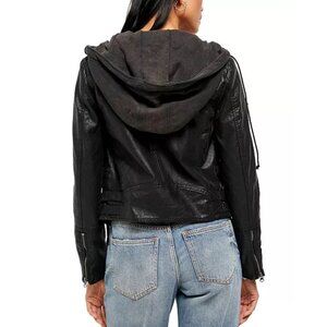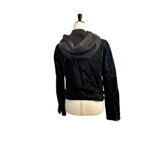 Free People We The Free Cleo Faux Suede Hooded Moto Jacket Vegan Leather Small B