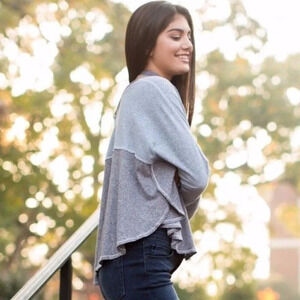 Lightweight tee boasts a relaxed and airy look, and color blocking detail adds an elevated feel.